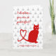 Um escritor famoso escreveu Que presente maior do que o amor de um gato. O amor existe em muitas formas. Este gato é fazer declaração de amor com sua cauda. Quem será o sortudo? Esta design mostra a silhueta de um gato vermelho sobre a cinza de fundo de corações brancos redondos em forma de padrão. Use este produto sempre que você sentir a necessidade de enviar uma mensagem de amor para sua namorada ou qualquer ocasião ou evento romântico ou para celebrar o Dia de os namorados. O texto pode ser personalizado.