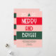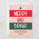 Torne os feriados de seus amigos e familiares mais claros enviando este Cartão de Feriado Vermelho Retro e Feliz Rosa Brilhante para Natal de 2022. São tons vibrantes de listras cor-de-rosa, vermelha e verde. A saudação é "feliz e brilhante" em letras brancas em negrito com letras maiúsculas na frente. Uma pequena árvore verde simples e de tendência está no centro superior com o ano personalizado "2022". Uma saudação curta personalizável está na área inferior seguida do nome da assinatura da sua família. CLIQUE EM PERSONALIZAR OPÇÃO MODELO E DIGITE NOME.