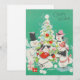 Cartão De Festividades Natal Antigo Bonecos de Neve Dançando em Torno da