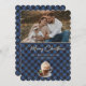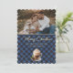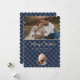 Elegante foto de xadrez azul e de búfalo dourado Cartão de Natal Feliz com um cartões de natal de ouro com letra de mão e neve caindo em um fundo de xadrez de búfalo. Personalize facilmente este cartão de feriado azul e dourado com a sua fotografia, o nome da família e o ano. Mais opções de cores disponíveis. O efeito da folha de ouro só é simulado no trabalho de arte.