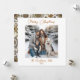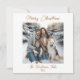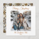 Cartões de Natal personalizados com uma foto da família. Bonito ouro clássico antiquado, fundo festivo de neve.