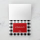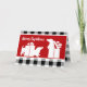 Cachorros salsicha fofos de Natal brincando nos presentes de Natal. Xadrez preto e branco ousado de Natal com cartão vermelho festivo brilhante com silhueta de cães de Natal. Personalize o texto na frente e dentro do cartão de Natal com seu próprio recado pessoal como preferir.