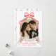 Celebre a alegria da sua primeira temporada de festas juntamente com esta elegante cartão com fotos de casamento do Primeiro Natal. Apresentando um retrato personalizado de um casal enquadrado com sotaques de fita de cor d'água, holly festivo e florais de inverno suaves, este cartão de Natal personalizado para recém-casados é o melhor guardião para compartilhar seu amor com a família e os amigos. A design destaca a sua foto de casamento, complementada por uma fonte clássica de script anunciando "Primeiro Natal como Sr. & Sra.", juntamente com seus nomes impressos elegantemente abaixo.