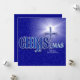 Azul rico com sotaques reluzentes criam uma saudação religiosa de Natal com uma cruz cristã e sua mensagem pessoal com nome nas costas.