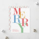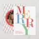 Cartão de Natal Colorido da feliz. Envie uma mensagem festiva e alegre com este cartão de Natal ousado e moderno, com cores vibrantes e tipografia em camadas que soletra "FELIZ" em estilo atraente em um fundo branco.Adicione sua foto e mensagem no quadro inverso da foto moderna. A palavra "feliz" está por detrás da fotografia e tudo está brilhante! Perfeito para adicionar uma reviravolta única aos cartões de natal, esta placa é ideal para qualquer um que ama o design moderno e o decoro de feriado lúdico. Personalize com seu nome de família ou uma mensagem curta para um toque pessoal. Espalhe a alegria de férias com um cartão que se destaca!