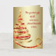 Cartão de Natal cristão com bela árvore de Natal com fita vermelha e dourada em um fundo dourado elegante. Este lindo cartão de Natal cristão vermelho e dourado é facilmente personalizado com seu nome ou nome da família, ou você pode deixá-lo como está e adicionar sua mensagem manuscrita quando chegar.