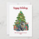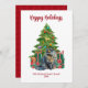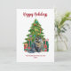 Mande alegria festiva com este charmoso cartão de férias de gato persa! Uma árvore de Natal decorada com ornamentos, arcos e presentes embrulhados faz o pano de fundo perfeito para uma bela ilustração de gato de cabelos longos. Personalize a frente com o nome da sua família, o nome do seu gato e o ano, enquanto a parte traseira apresenta um padrão de impressão vermelho lúdico. Uma maneira maravilhosa para amantes de gatos e pais de animais de estimação compartilharem cartões de natal com amigos e familiares.