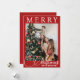 Espalhe a alegria de feriado nesta temporada com este lindo e elegante cartão de Natal personalizado vermelho e branco, apresentando uma de suas carinhosas fotos de família na frente. Adorado com a palavra "FELIZ" no topo e "Natal" em um roteiro clássico na parte inferior ao lado do nome da sua família. No verso, a mensagem pode ser personalizada e compartilhar uma mensagem de Natal emocionada e editável, perfeitamente adaptada para expressar seus desejos únicos de feriado. Adicione seus primeiros nomes abaixo da mensagem para adicionar um toque pessoal, criando uma manutenção que amigos e familiares irão valorizar. Este cartão é a combinação perfeita entre tradição e personalização, fazer uma forma inesquecível de espalhar alegria de férias.