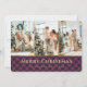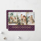 Cartões de Natal, roxos e xadrezes de búfalos dourados, com uma colagem fotográfica sobre um fundo de xadrez de búfalos preto e roxo. Personalize facilmente estes cartões de Natal fotográficos com as suas imagens e texto.