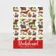 Um lindo cartão de Natal do Dachshund. Este design maravilhoso apresenta todas as coisas Xmas incluindo presentes e sagrados - e bonitinhos, é claro! Incluindo a frase engraçada "Dahshund através da neve!". Personalize com sua própria saudação e dentro de mensagem.