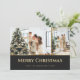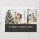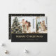 Cartões de Natal Elegantes, preto e dourado, com duas fotos na frente e estrelas douradas sobre fundo preto nas costas. Personalize facilmente estes cartões de Natal com fotografias modernas com as suas imagens e texto.