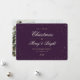 Cartão de Natal Elegante, roxo, Feliz dourada e Brilhante, com estrelas pequenas sobre fundo roxo na frente e uma foto na parte de trás. Personalize facilmente este cartão de feriado roxo com fotos e nomes da sua família.