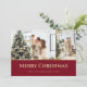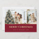 Cartões de Natal Elegante, vermelhos e dourados, com duas fotos na frente e estrelas douradas sobre fundo vermelho na parte de trás. Personalize facilmente estes cartões de Natal com fotografias modernas com as suas imagens e texto.