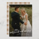 Um simples cartão de feriado fotográfico com casado e feliz manuscritos com ramificação e tipo mínimo. Clique no botão editar para personalizar este design.