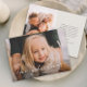 Simples Manuscrito Cartão de Férias de Natal com Script Simples com Letra manual - Tipografia de Sobreposição de Feliz Natal na frente. As costas têm uma foto adicional e uma mensagem de feriado da família. Clique no botão Editar para personalizar este design.