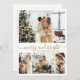 Feriados Felizes, Dourados e Brancos modernos Script de Cartão de Natal de Colagem de Fotos 4. Esta placa de Natal minimalista apresenta uma colagem de 4 fotos na frente e uma foto extra na parte de trás. A saudação "Felizes Feriados" é elegantemente escrita à mão na caligrafia dourada, num fundo branco limpo, oferecendo um toque chic e moderno à sua mensagem de feriado. O verso inclui um modelo de saudação personalizável com um motivo de rabisca cardíaco e espaço para uma foto adicional. Perfeito por compartilhar alegria festiva com familiares e amigos, esse cartão personalizado é a maneira ideal de celebrar o feriado no estilo.