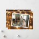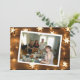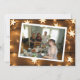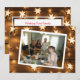 Cartões de Natal personalizados. Cartões de Natal com fundo de madeira envelhecida e luzes de estrela iluminadas. Adicione sua foto na área de personalização.