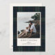 Cartão de Natal moderno com um design de eterno com sua foto favorita sobre um fundo de xadrez azul e azul de marinho sem som juntamente com a saudação, "Feliz Natal". Use a modelo para adicionar sua mensagem personalizada.