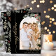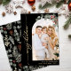 Cartões de Natal Elegante da Caligrafia Botânica de inverno Preto e Dourado Script 1 de Arco Fotográfico. Este moderno e festivo cartão de natal fotográfico apresenta um bonito arco fotográfico decorado com galho de pínus, bagas e folhas de eucalipto, um texto de saudação "Feliz Natal" que é escrito em uma fonte de rabo de pântano com letra manuscrita em ouro sobre fundo preto. No verso da folhagem botânica de inverno, as bagas, as folhas de eucalipto, as agulhas de pinheiros e as ramificações. Estas Cartas Personalizadas de Natal são uma forma excelente de lembrar aos entes queridos que vocês estão pensando sobre elas nesta temporada de festas de inverno.