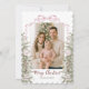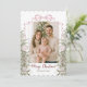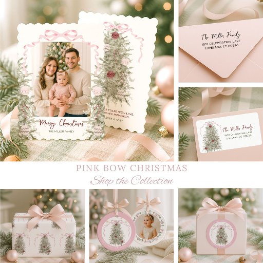 Compartilhe alegria de férias com este elegante cartão com fotos de Feliz Natal. Apresentando sua foto familiar emoldurada por evergreens, ornamentos, e um arco cor-de-rosa festivo, esta design combina lindamente o encanto sazonal com um toque moderno. A frente mostra seu cartões de natal e seu nome de família, enquanto a parte traseira inclui espaço para uma mensagem personalizada, fazer cada placa com sentido e única. Perfeito por enviar desejos calorosos a amigos e entes queridos durante o feriado.