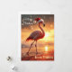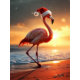 "Esta ilustração deslumbrante e única captura o espírito de um Natal tropical. Um belo flamingo rosa fica elegantemente na praia ao pôr do sol, vestido com um clássico chapéu de Papai Noel. A cena combina o calor dos trópicos com alegria festiva, completa com neve leve. Este gráfico é perfeito para cartões de Natal para aqueles que preferem clima quente, produtos de Natal temáticos do Havaí ou da Flórida, canecas, camisetas e decorações de Natal temáticas de praia."