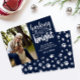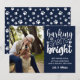 Chamando Todos Os Pássaros De Cachorro! 🐶 🎄 um Cartões de foto de Natal engraçado e simples com a citação de 'Barking Spirit Bright' em um estilo de tipografia moderna mista sobre um fundo de MARINHO. Use a modelo para adicionar seu cão ou foto de animal de estimação ou retrato da família com seu amigo Furry uma pequena mensagem personalizada e sua assinatura. O esquema de cores marinho e BRANCO inclui os acentos de impressão de pata bonitinhos na parte frontal e traseira do cartão. AS CORES DISPONÍVEIS DE DOWNLOAD DIGITAL SÃO EDITÁVEIS!