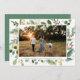 Este elegante cartão com fotos de feriado apresenta um belo quadro de botânicos com aquarela com sotaques de ouro falsos. A design é simples, mas elegante. Na frente da placa há uma foto horizontal. Na parte de trás você encontrará um padrão de bolinhas verde e branca.