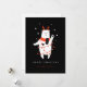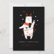 Este cartão de Natal adorável apresenta um urso bonito vestido com um cachecol aconchegante com galhadas, envolto em luzes festivas. Colocada contra um fundo negro ousado com sotaques vermelhos alegres, esta design lúdica é perfeita para enviar desejos quentes de feriado aos entes queridos. A ilustração minimalista e divertida acrescenta um toque encantador a qualquer celebração de feriado.
