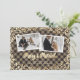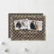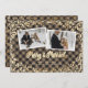 Feliz de fotos de xadrez de búfalos brilhantes e cartão de Natal casado com título de fonte de caligrafia, neve dourada, estrelas brilhantes luzes mágicas de Natal e duas fotos em um fundo de xadrez de búfalos preto e khaki. Personalize facilmente este novo e brilhante cartão de Natal fotográfico com as suas fotografias e o nome da família.