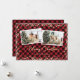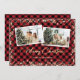 Cartão de Natal de ouro e xadrez de búfalos vermelhos com um título de letra de caligrafia de folha de ouro e luzes mágicas de Natal brilhantes na frente e um fundo de xadrez de búfalos preto e vermelho no verso. Personalize facilmente este cartão de Natal com fotos cintilantes com as suas fotos e o seu nome familiar.