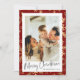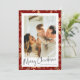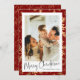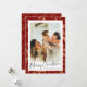 Envie desejos de férias quentes com um cartão clássico de Natal com fundo na moda vermelho e padrão elegante de ouro. Esta modelo de cartas moderna e moderna permite que você adicione sua própria foto de família para um toque pessoal, perfeito para compartilhar vibrações de Natal com entes queridos. Crie um design personalizado que reflita seu estilo e torne seus cartões de natal inesquecíveis!
