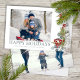 Esta design apresenta as groselhas vermelhas de Natal, com a fotografia 2 duas figuras familiares, verde botânico folhagem de inverno, cor vermelha azul-d-água, galhos elegantes de galhos de pinheiro, folhas clássicas tradicionais de eucalipto, caligrafia com script, com letra moderna de caligrafia, moderna e elegante tendência simples, uma bela coleção de fotos multicolagem Cartão de Natal
