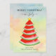 Você planeja um Natal em julho deste ano? Este Natal divertido, em cartões de julho, é decorado com uma melancia de cor vermelha, árvore de Natal num fundo colorido. Original Watercolor © Michele Davies.