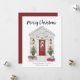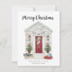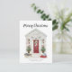 Natal feliz da nossa casa - Uma bela porta de Natal em vermelho, decorada para as férias. O cartão é personalizado com seu nome de família, endereço e ano. O cartão faz parte de uma coleção.
