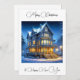 Lindo cartão de Natal personalizado com uma casa vitoriana iluminada.