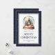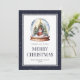 Azul-aquarela Cartão de Natal Merry com dentro de Papai Noel num globo de Natal. Personalize facilmente este cartão azul de festas de neve com seu nome familiar e o ano.