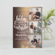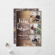 Um elegante projeto de colagem de fotos de Natal com 3 fotos emolduradas a dourado para você personalizar com suas fotos favoritas, mensagem, nomes e ano em um fundo de madeira rústica. O verso apresenta flocos de neve caindo em um fundo de painéis de madeira rústica combinando. Criado por Thisisnotme©