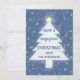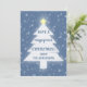 Árvore de Natal azul e branca com estrela amarela e neve caindo. Altere facilmente qualquer texto.