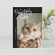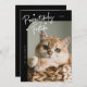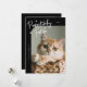 Cartão-modelo de fotografia de Natal bonito e engraçado para os donos de gatos com um texto manuscrito com corações que diz "Festivo Pawsitively" com uma foto do seu gatinho. O fundo é preto.