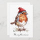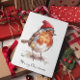 pintura aquosa de um pinto vermelho com chapéu vermelho de inverno no estilo de natal