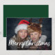 Este cartão de Natal moderno e vibrante apresenta sua foto pessoal na frente, com uma sobreposição de texto branco na moda e uma cor verde rica no verso.