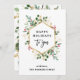 Estes belos cartões de férias sem foto apresentam uma moldura geométrica dourada falsa com folhas douradas combinando, folhagens de Natal elegantes e frutos vermelhos de azevinho em um fundo branco simples sem foto. A tipografia moderna diz "Boas Festas para você". Há espaço para uma mensagem pessoal no verso.