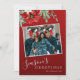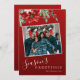 Cartão de Férias de Natal Vermelho. Mande alegria festiva com nosso cartão de Natal lindo, com um fundo vermelho vibrante e enfeitado com elegantes poinsettias de aquarela. O cartão exibe com destaque "Saudações da temporada" e oferece um lugar perfeito para sua foto personalizada, adicionando um toque pessoal à sua mensagem de feriado. Este belo design combina elementos clássicos de feriado com um toque de arte, fazer-o como um modo ideal de partilhar alegria e calor com a família e os amigos nesta época de Natal.