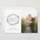 Cartão com fotos de natal novo, de formato personalizado, com caligrafia moderna de "natal casado", rodeado por design em uma elegante faixa de natal com verde de inverno e bagas vermelhas.