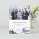No Natal, o logótipo branco azul da floresta azul Um Cartão de Férias Empresariais. O cartão de cartões de natal de empresa em um estilo clássico com paisagem de inverno monocromática em cores azul e branco marinho. Na moda e design elegante. Pelo contrário, há parabéns para colegas e parceiros. Uma foto. Logo.