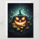 Cartão De Festividades Natureza assustadora com abóbora de Halloween bril