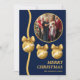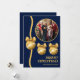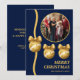 Cartão De Festividades Navy Blue & Gold Ornaments Family Christmas Photo