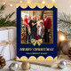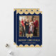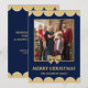 Cartão De Festividades Navy & Gold Bow Scalloped Family Christmas Photo