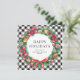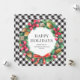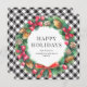 Cartão de férias de xadrez preto e branco, elegante, com cor d'água, uma coroa natalícia de galhos, pinos e fitas. Personalize facilmente este cartão de feriado profissional com o nome da sua empresa.