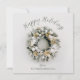 Cartões de cartões de natal de negócios quadrados apresentam uma bela coroa de pinheiros com neve, encravada com ornamentos de árvores de Natal brancas e douradas e flores na frente, juntamente com uma saudação e um nome de empresa. Mensagem personalizada no verso em um fundo verde. ***O TAMANHO QUADRADO REQUER POSTAGEM EXTRA - e-mail em envelope de 5" x 7" para postagem de taxa regular. Certifique-se de verificar seu pedido duas vezes antes de adicioná-lo ao seu carrinho, pois o que você vê na tela é o que será impresso. O Serviço de Design ao Vivo pode ajudá-lo com seu layout de design, se necessário.